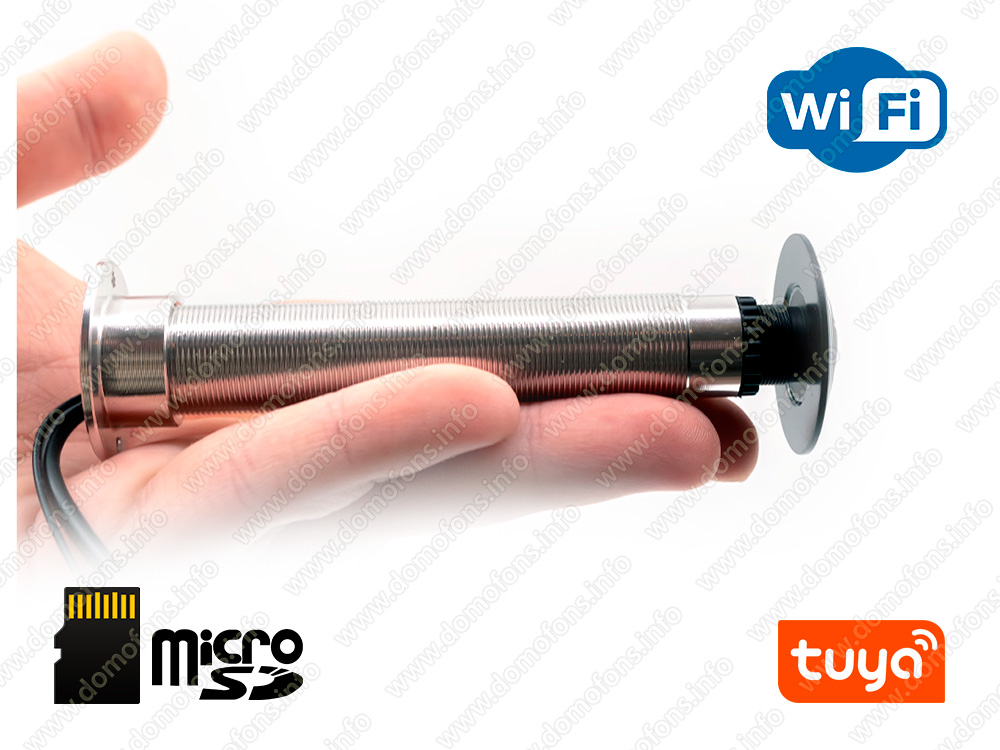Дверной WiFi-TUYA видеоглазок "IHome-HQ04-Tuya" внешне ничем не отличается от стандартного дверного глазка и устанавливается практически в любую дверь толщиной до 106 мм. Устройство монтируется в отверстие в двери вместо обычного глазка без переделок (диаметр отверстия 16-26 мм). Просмотр изображения с камеры видеоглазка осуществляется дистанционно со смартфонов (Android; iOS).