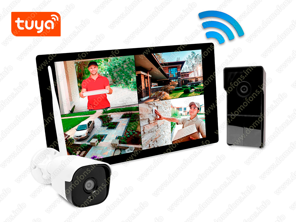 Комплект радиоканальный Wi-Fi TUYA видеодомофон с уличной камерой наблюдения "SkyNet 1000 (1+1)"