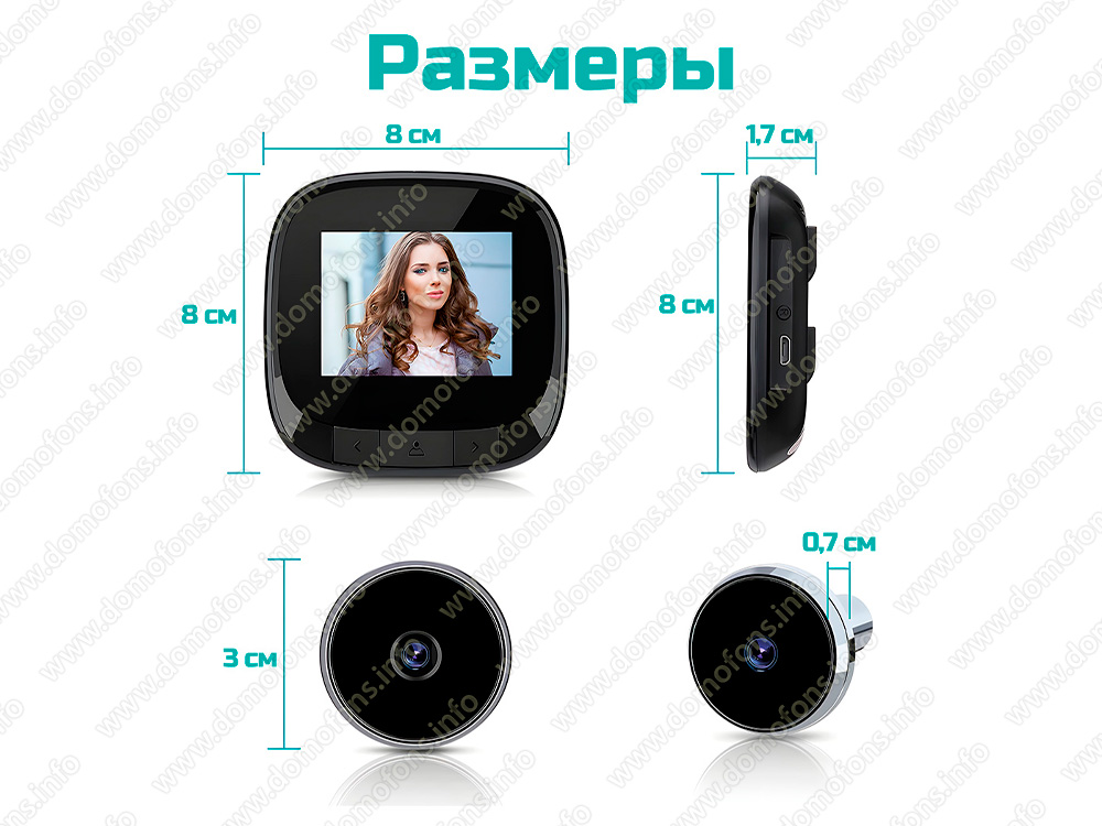 Видеоглазок является полностью беспроводным и оснащен встроенным аккумулятором емкостью 600 мАч, который обеспечит автономную работу видеоглазка до 6 месяцев. Прибор позволит в любой момент проконтролировать пространство перед входной дверью и сделать фотографию, сохранив ее на встроенную память прибора. Внутренний диаметр камеры подобран так, что рассверливать отверстие от обычного дверного глазка при установке не придется.